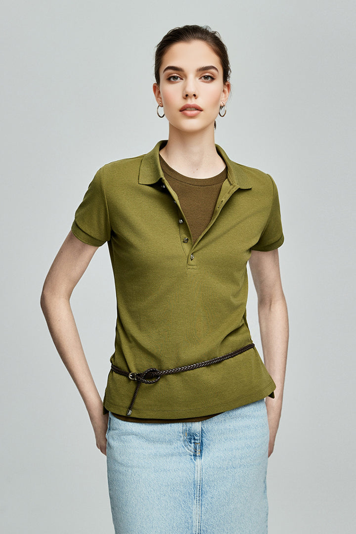 This classic polo t shirt is made from premium cotton, designed for those who appreciate sleek style and comfort. Its slim-fit silhouette flatters your physique while the silver-tone button adds a touch of elegance. A versatile piece, this cotton t-shirt pairs perfectly with both jeans and chinos. Opt for plain colored t shirts without sacrificing sophistication. Elevate your wardrobe with our contemporary yet timeless design.