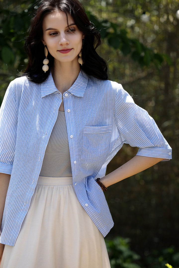 Short Sleeve Vertical Striped Shirt Women