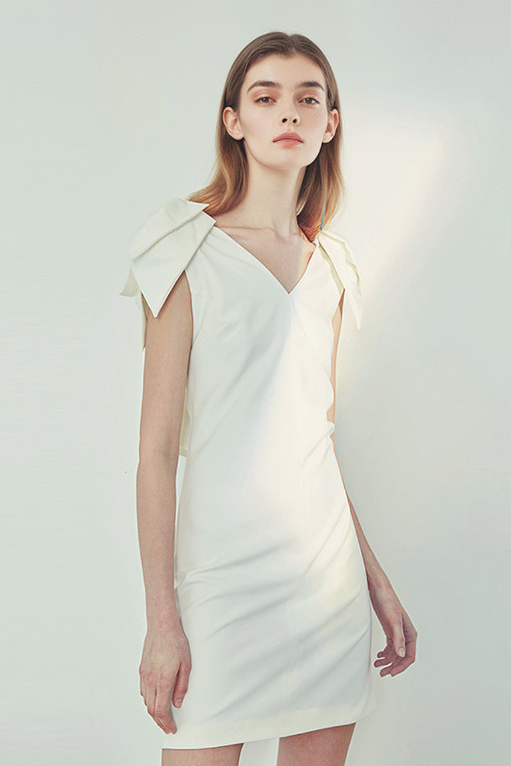 Perfect for any special occasion, this white mini dress is meticulously designed with a backless bow that captures effortless elegance. Crafted from premium natural materials, the V-neck mini dress offers a striking blend of contemporary design and classic style for a refined look. Ideal for homecoming or a sophisticated weekend outing, this sleeveless dress will be your new wardrobe favorite.